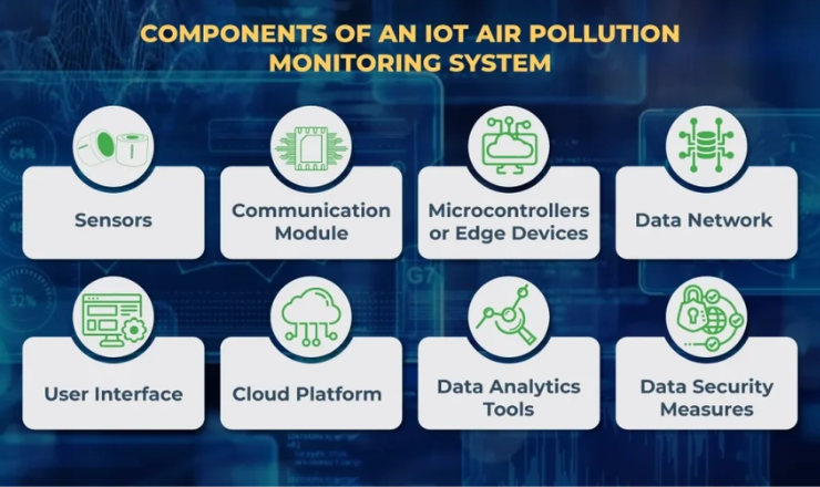 IoT-based air pollution monitoring systems comprise several components that work together to collect and analyze air quality data. The components include: