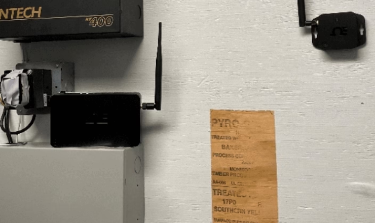 The IIoT solution consists of a temperature/humidity sensor (the small black box with antenna at the right in the photo below) and a gateway (the larger black box with antenna to the left). The real-time temperature/humidity data is transferred from the sensor through the gateway to secure cloud storage. Authorized users can access this data from any location with an internet connection via a laptop or mobile device browser.